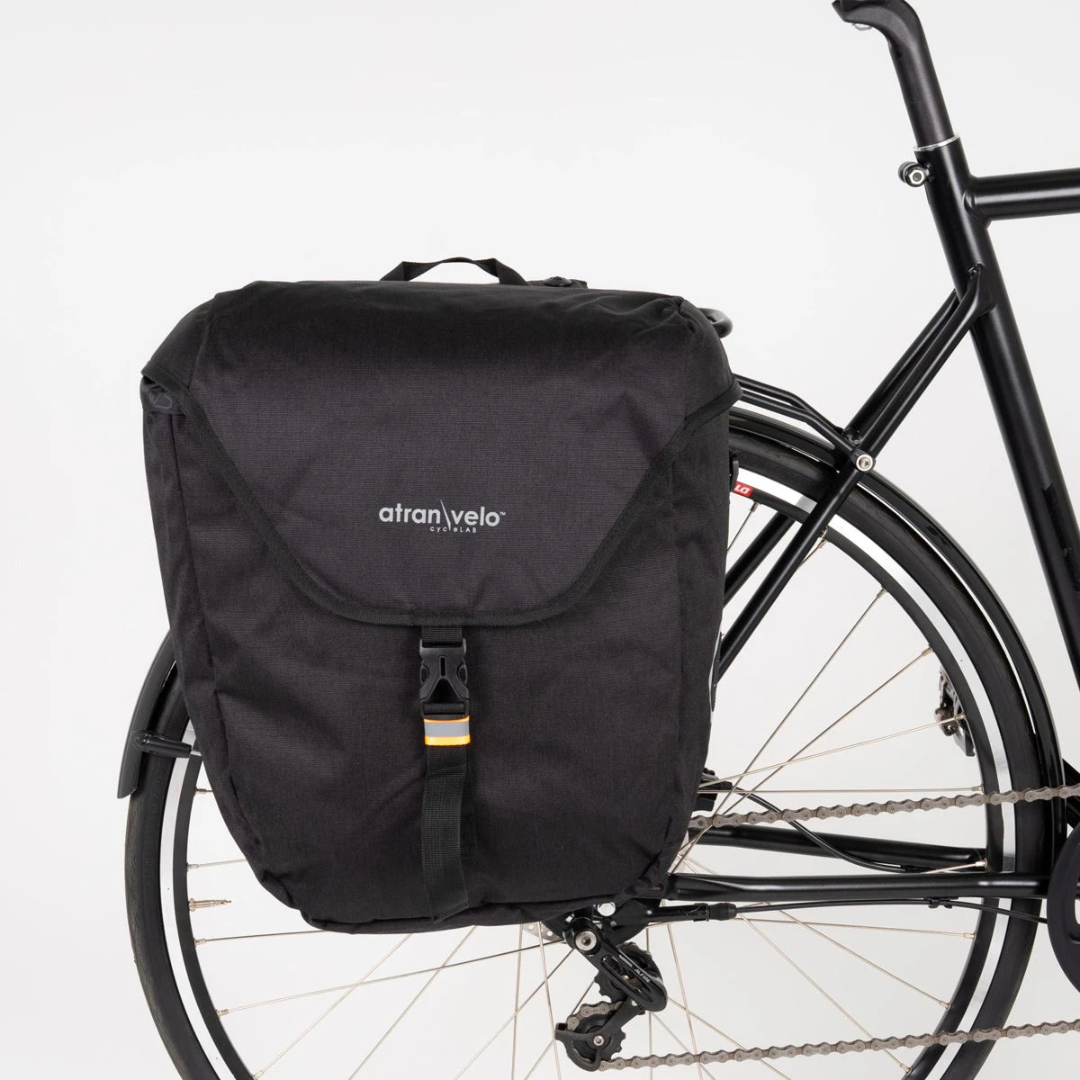 Moderni AVS -yhteensopiva Atran- sivulaukku. Helppo ja nopea kiinnitys pikalukoilla.