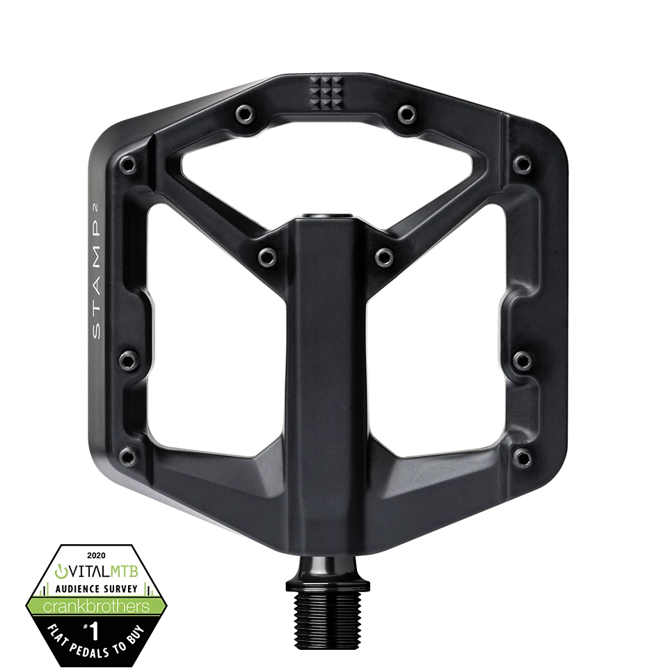 Crankbrothers Stamp 2 on erinomaisen hinta-laatusuhteen omaava avopoljin. Matala runko on valmistettu alumiinista. Polkimen molemmilla puolilla on yhdeksän vaihdettavaa teräsnastaa. Enduro® -laadukkaat liukulaakerit pitävät pyörimisen herkkänä.