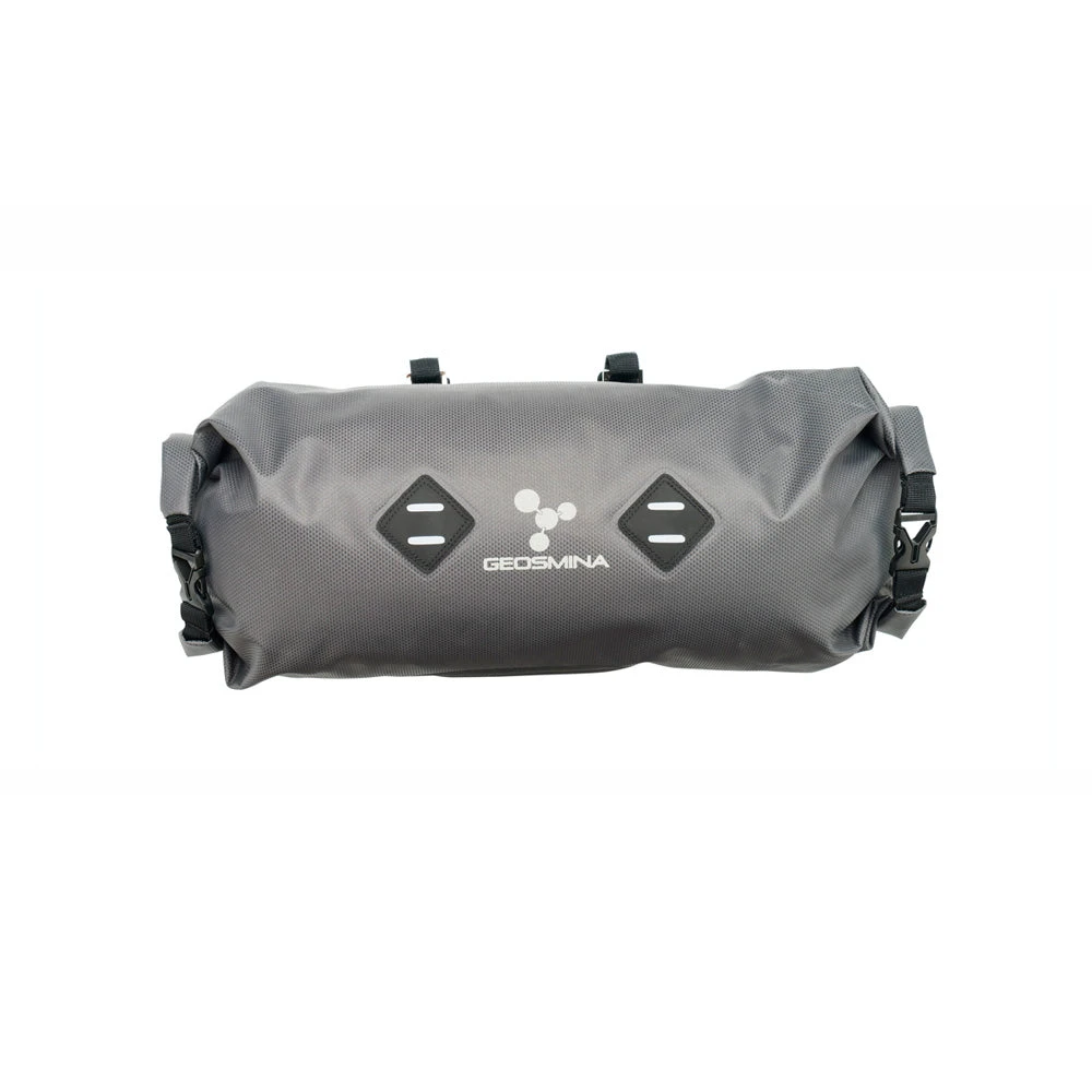 Geosminan Handle Bar Bag on 100% vedenpitävä simppelin toimiva tankolaukku. Se on yksinkertainen 10 litrainen laukku, jossa on vain tarvittava. Laukussa ei ole mitään ylimääräistä, mutta se on silti tukeva ja paino on pysynyt minimissä. Se voidaan kiinnittää lähes kaikkiin tankoihin ja irrotus onnistuu helposti. Laukku avautuu molemmista päistä ja se on käytettävissä myös kiinnitettynä. Laukussa on käytännöllinen roll top -kiinnitys ja eteen saa kiinnitettyä vaikka etuvalon tai varusteita irtohihnoilla.