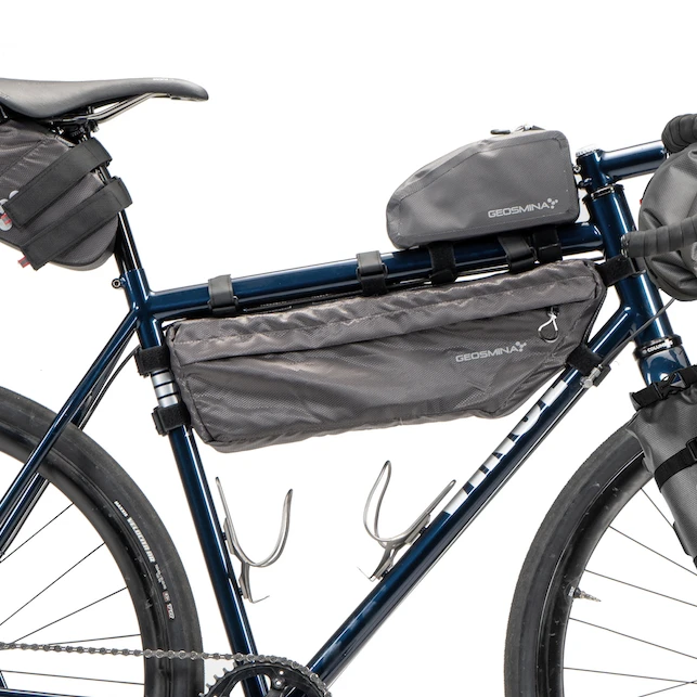 Tämä on ainoa Geosmina-laukku, joka ei ole 100 % vedenpitävä. Se kestää vettä ja roiskeita, kunhan olosuhteet eivät ole äärimmäiset. Jälleen kerran polyuretaanipinnoite hylkii vettä pitkään ja kuivaa ennätysajassa. Se mukautuu runkoon tarranauhojen avulla, ja sitä löytyy kolmessa eri koossa: 5,5, 3,5 ja 2,5 litraa.