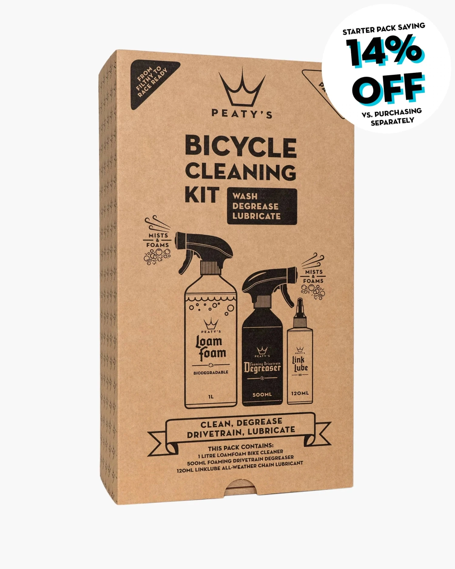 Laita likainen pyöräsi ajokuntoon tällä aloituspaketilla, joka sisältää: