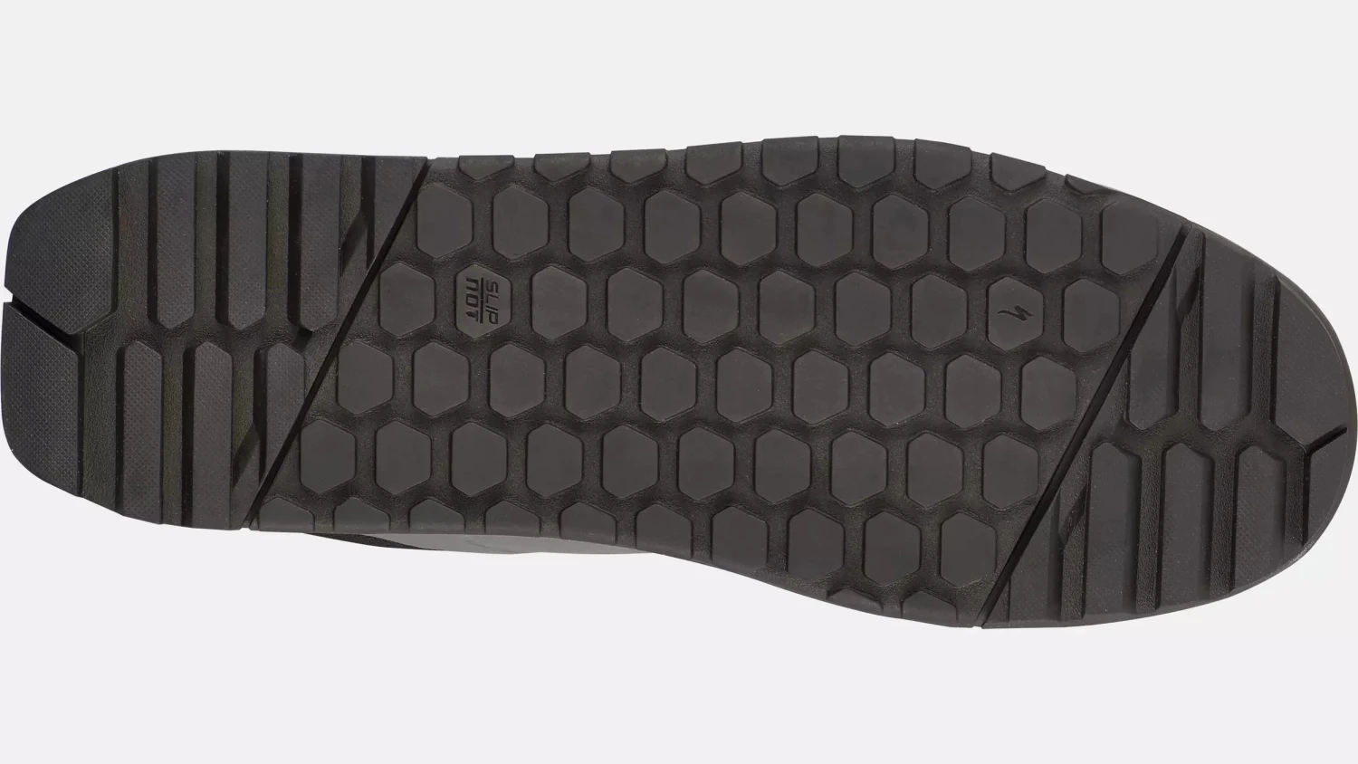 Rime Flat on varustettu etujalan joustavalla kulutuspintaosalla, joka mukautuu maaston mukaan. Kengän SlipKnot™ ST -kumipohja tarjoaa pitoa ja jäykkyyttä optimaalisessa suhteessa avopolkimilla ajamista varten, samalla kun pehmustettu EVA Foam -välipohja lisää jalkineen iskunvaimennusta ja vakautta. Kevyt X-Pel -verkko parantaa hengittävyyttä ja lyhentää kengän kuivumisaikaa merkittävästi.