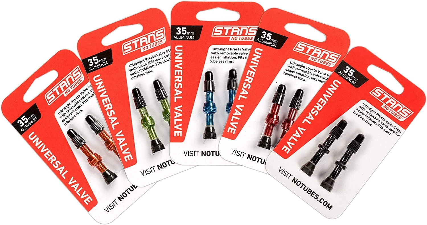 35mm/44mm/55mm pituiset ja kevyet alumiiniset venttiilivarret painavat puolet tavallisista messinkiventtiileistä. Vain 9g venttiiliä kohti 44 mm:n mallissa. Turvallinen pyöreä pohja on yhteensopiva useimpien tubeless-vanteiden kanssa ja sopii täydellisesti kaikkiin Stanin BST-vanteisiin. Irrotettava venttiilin ydin tekee tiivisteen lisäämisestä helppoa. Sisältää 2kpl venttiileitä.