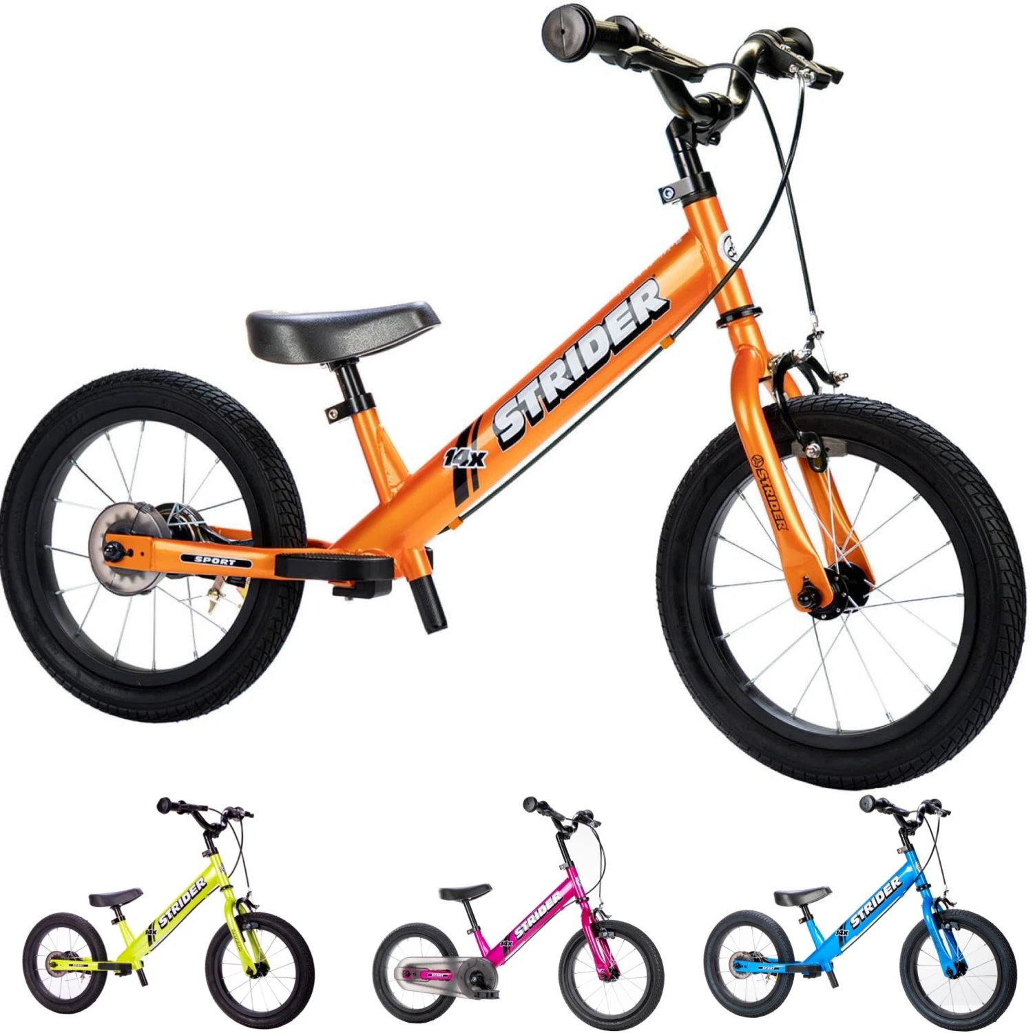 14x on potkupyörä, joka auttaa sekä lapsia, jotka eivät ole istuneet aiemmin pyörän selässä, että kokeneita Strider-pyöräilijöitä saamaan lisää varmuutta ja tasapainotaitoa suuremmalla pyörällä. Kun lapsi on valmis polkemaan, liitä vain Easy-Ride -poljinsetti ja VOILÁ! Sinulla on maailman mukautuvin ja mahtavin polkupyörä!