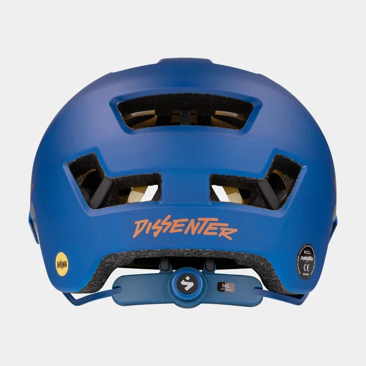Sininen ja valkoinen Dissenter MIPS kypärä on hinta-laatusuhteeltaan hyvä kokonaisuus maastokäyttöön. Sen yksiosainen polykarbonaattikuori takaa kevyen, mutta jämäkän suojan samalla ollessa ulkomitoiltaan suhteellisen pieni. Kuoren muotoilun ja Occigrip-kiristyksen ansiosta kypärä hengittää hyvin ja pysyy tiukasti päässä kovemmassakin ajossa. Paino 330g (MIPS M/L-koko)